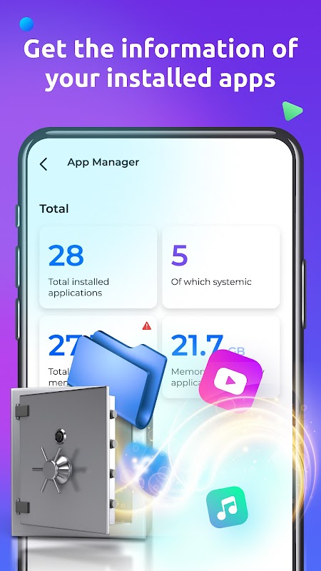 - View and manage your installed applications, check app usage statistics.