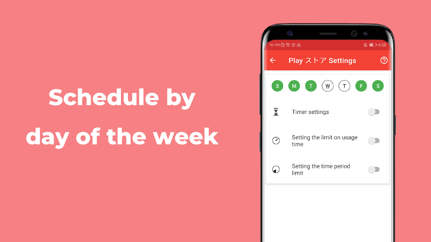 - Set a usage timer for each app individually (max 24 hours).