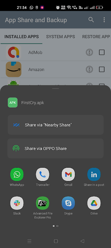 backup and Restore apps and share via Bluetooth,whatsapp, Email , Facebook etc.