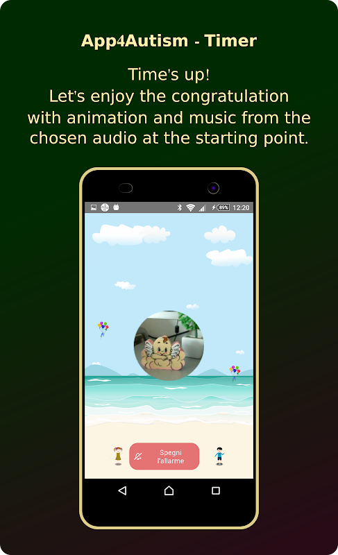 Furthermore, the innovation of the timer is the possibility of showing a predictable and concrete limit of the time remaining to carry out an activity (the image of the current activity disappears gradually, respecting its flow of time), or to make it predictable and concrete on how much time needed to wait before enjoying an appreciative activity (the image of the appreciative activity gradually appears respecting the flow of time). Finally, the child will enjoy the appreciative activity with the audio and pleasant animation.