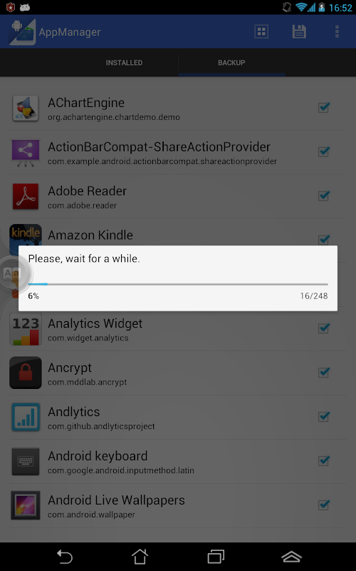The next functionality of app manager is an application backup. You can backup installed (free and paid) applications on your SD card or any other storage in your android phone.
