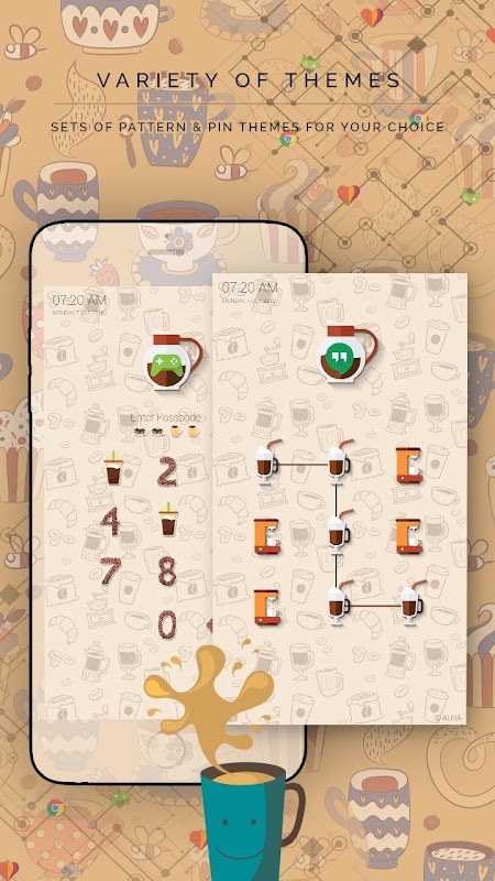 If you are searching for Coffee theme for applock then this app is best for you. Numeric Lock Screen & pattern lock screen in Coffee Theme.