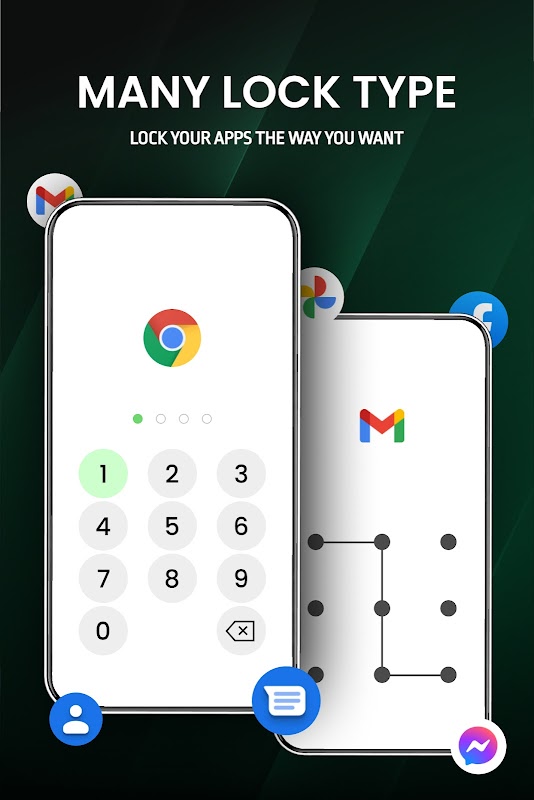 - Applock app can quickly lock SMS, Messenger, Whatsapp, Snapchat, Line ... ensuring absolute data security and privacy.