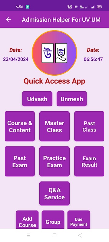 Admission helper for Udvash-Unmesh mobile app is very helpful for udvash's-unmesh's student for access quickly and fastly to udvash-unmesh online portal.This app specially design for university admission students of udvash-unmesh who have a account on udvash-unmesh website.Easily accessible all admission service of udvash-unmesh by the admission helper for udvash unmesh mobile app.By the admission helper for udvash unmesh mobile app udvash's-unmesh's student can easily go udvash-unmesh online portal as udvash-unmesh Master Class,udvash-unmesh Q&A Service,udvash-unmesh Marathon Class,udvash-unmesh Past Exam,udvash-unmesh Exam Result and udvash-unmesh main website.