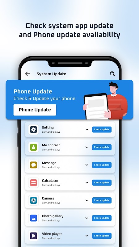 Get list of apps on your device & find out if latest updates are available.