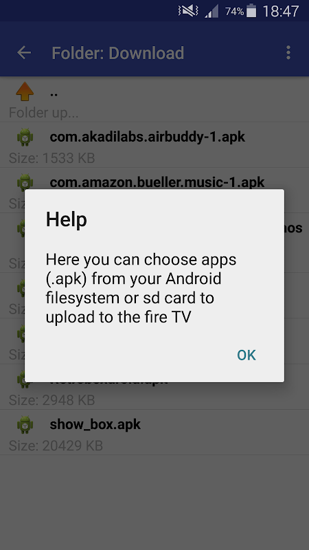 - Upload files (.apk, .jpg, .mp4,...) from your sd card to the Fire TV