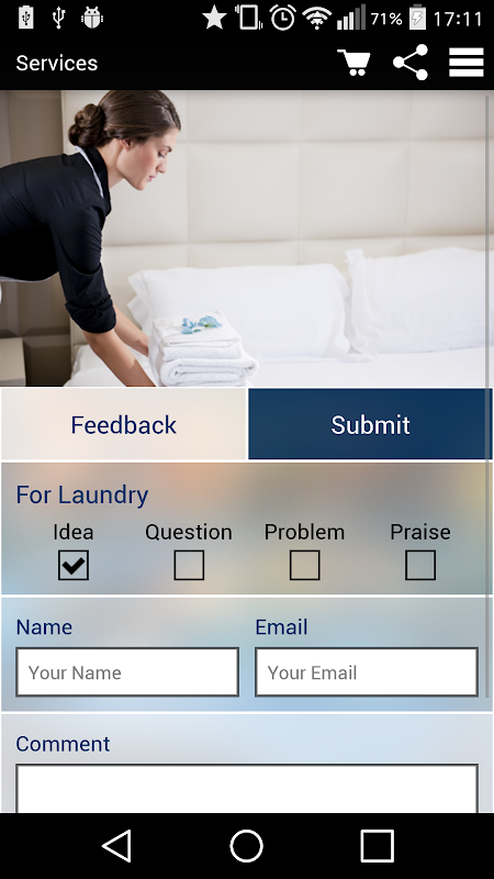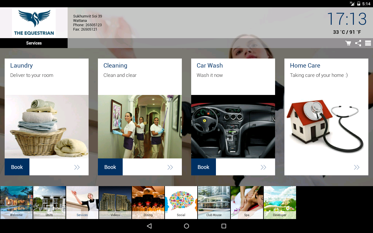 > Order or book services from tennis courts, to special services, to food from the local restaurant