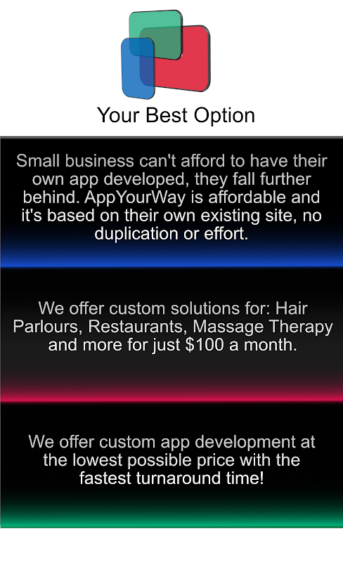 AppYourWay has developed a technique for both stores that allows us to charge just a fraction of what others would charge.