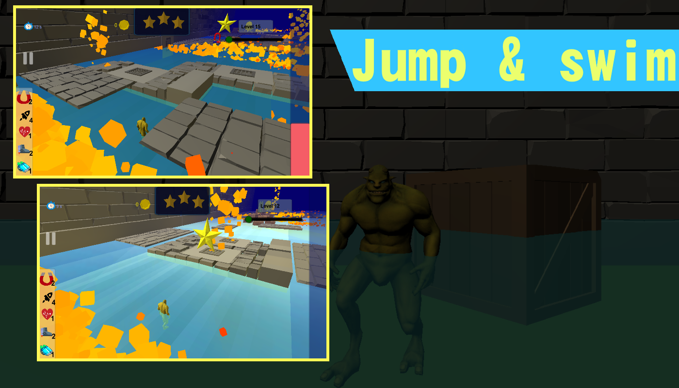 Jump in the fortress ruins and remember that you can stay alive only in the water.