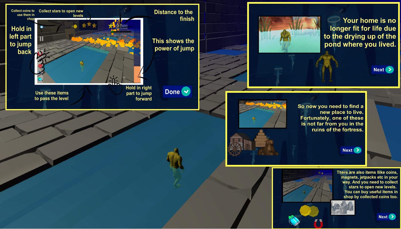 There are also items llike coins, magnets, jetpacks etc in your way. And you need to collect stars to open new levels. You can buy useful items in shop by collected coins too.