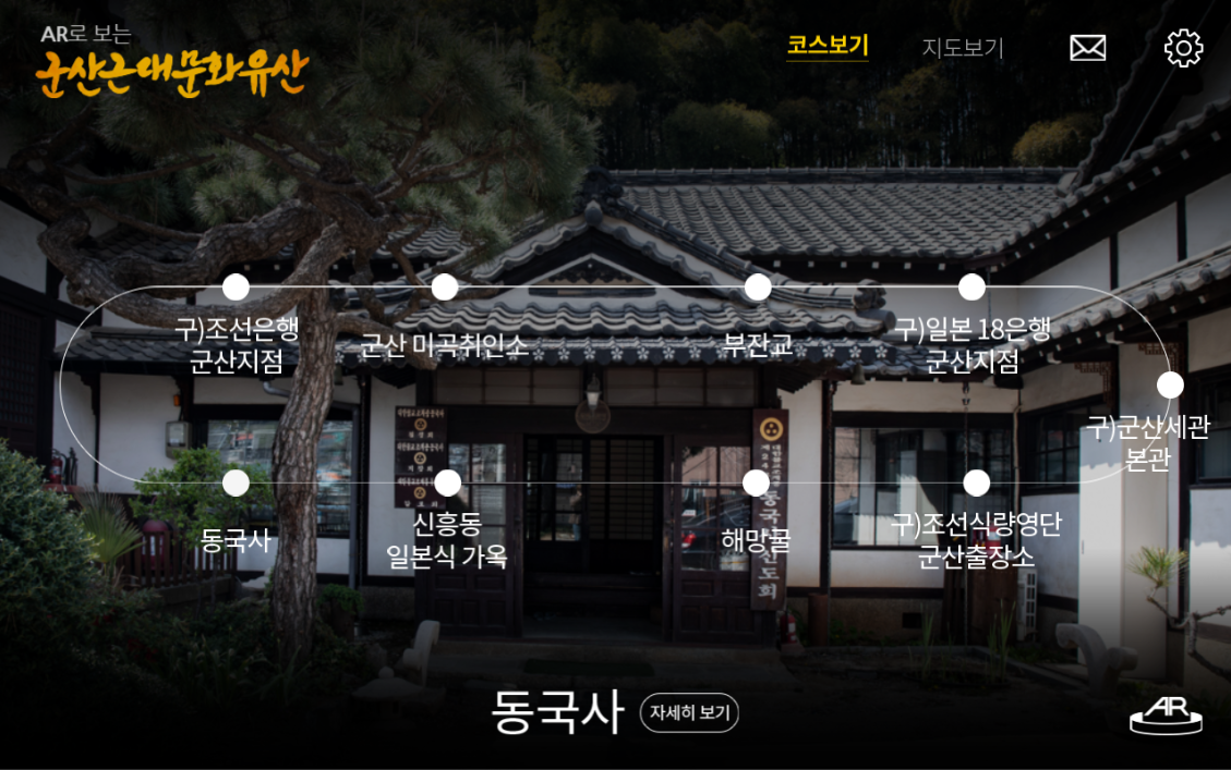 Gunsan Modern Cultural Heritage app viewed in AR is an application that allows you to enjoy the modern cultural heritage of Gunsan in AR.