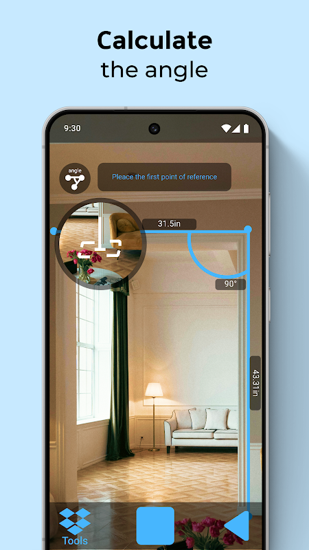 Measuring tools no longer need to be bulky stowed away in a toolbox. Your phone can now serve as a companion that helps measure dimensions with AR Ruler: Camera tape measure app for android. With just pointing your camera to furniture, wall space, and floor plans you can easily and accurately measure them. All measured angles, dimensions, and distances can all be stored in your pocket.