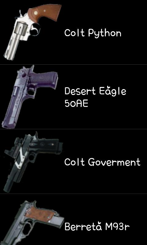 You can shoot eight kinds of guns including a handgun and the shotgun and etc, by default.
