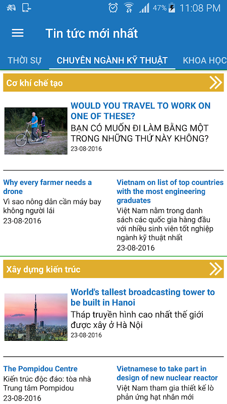 - Các bài báo mới nhất của nhiều chủ đề tiêu biểu như Thời sự, Chuyên ngành kỹ thuật, Khoa học - công nghệ, Kinh tế thương mại,...