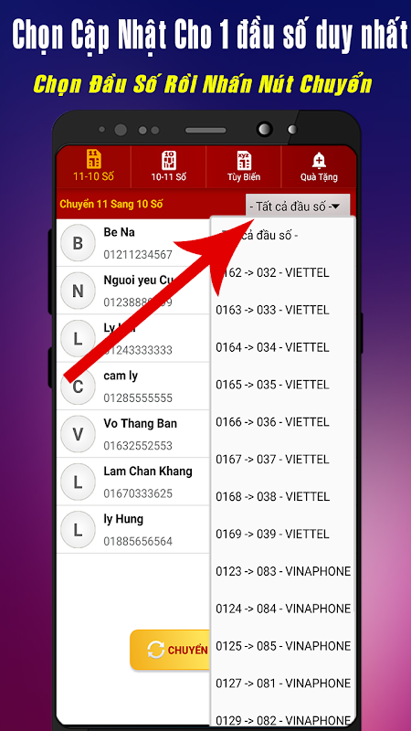 - Chuyển Đổi Tự Động: Chỉ với 1 một nút bấm duy nhất, tất cá số điện thoại 11 số sẽ được chuyển thành 10 số hoàn toàn tự động, theo quy chuẩn mới nhất của bộ TT&TT.