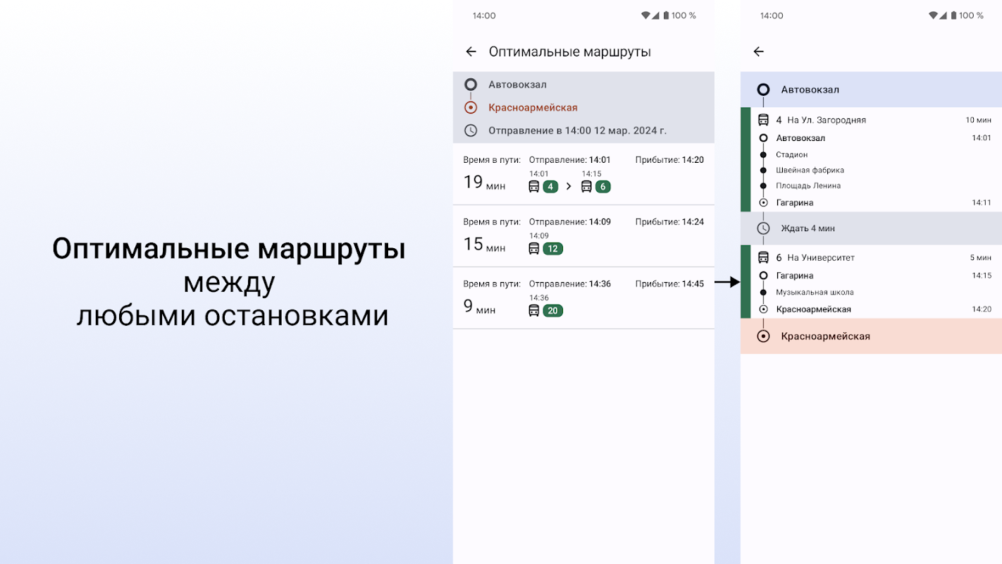 هل تريد معرفة وقت وصول أقرب رحلة إلى محطة معينة؟ انقر على المسار - سيفتح التطبيق قائمة بالمحطات مع وقت وصول أقرب وسيلة نقل.