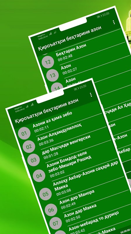 Қироъатҳои беҳтарин ва зебои азонро бе интернет гӯш кунед дилатон ором мешавад.