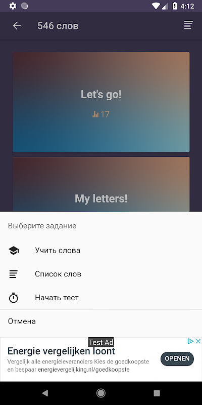 4) بعد الدراسة ، يمكنك المتابعة. أكثر من خمسة اختبارات لمستويات صعوبة مختلفة ستساعد في تطوير مهارات الاستماع والتهجئة الصحيحة والترجمة.