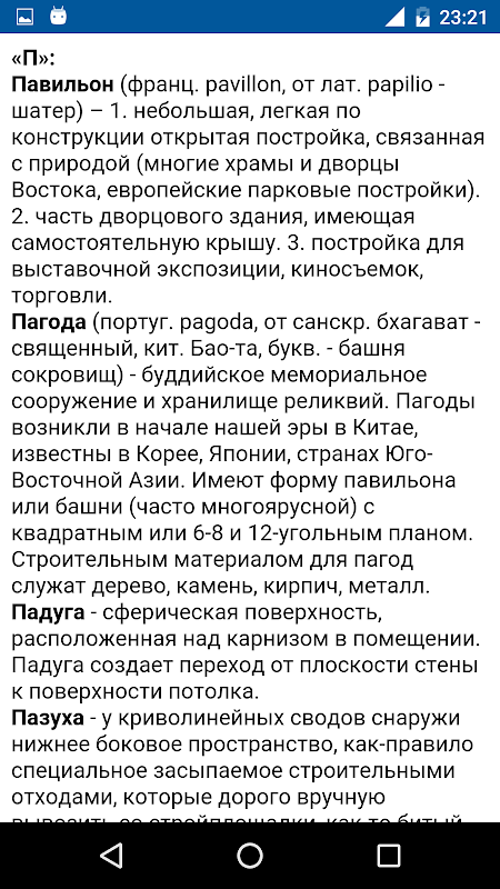 هذا القاموس جمعت أكثر من 500 الشروط المعمارية المتعلقة أنواع المباني والإنشاءات المعمارية والعناصر الزخرفية. سيكون تطبيق مفيد لكل من المعلمين والطلاب من التخصصات المعمارية وجميع المهتمين في مجال العمارة.