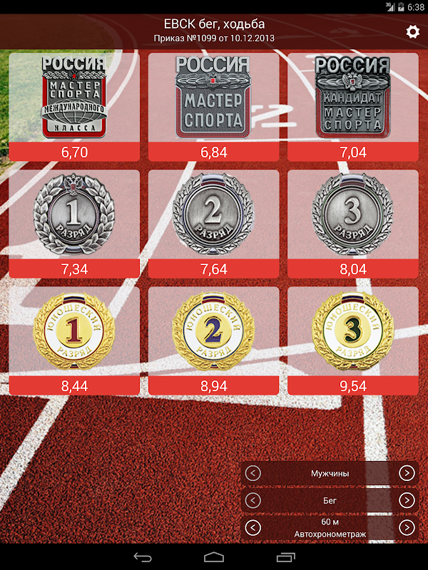 Если вы хотите знать с каким временем вам нужно бежать, идти, чтобы получить спортивный разряд или спортивное звание по бегу или ходьбе эта программа будет вам весьма кстати.