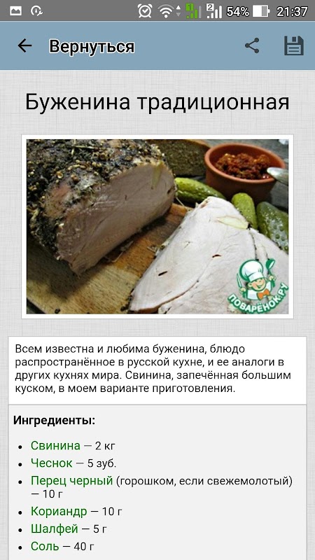 معلومات Буженина – рецепты с фото APK