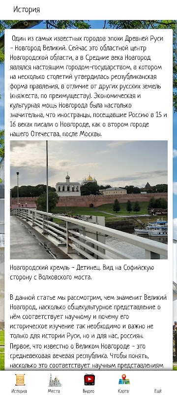 في التطبيق، يمكنك التعرف لأول مرة على مدينة فيليكي نوفغورود، واختيار مكان لرحلة من خلال النظر في المعالم السياحية ومراجعات الفيديو. يحتوي التطبيق أيضًا على معلومات حول الوكالات السياحية والفنادق التي تقدم خدماتها في فيليكي نوفغورود.