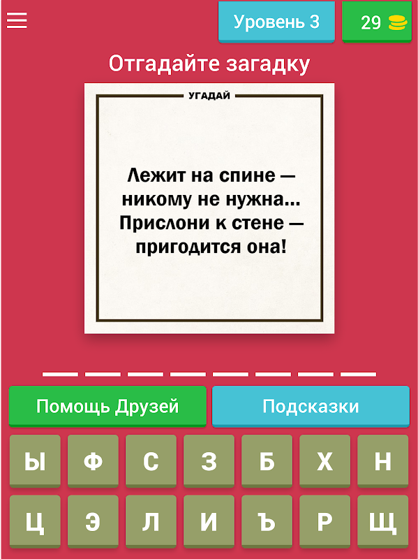 В игру Веселые Отгадки на пошлые загадки встроена система подсказок.