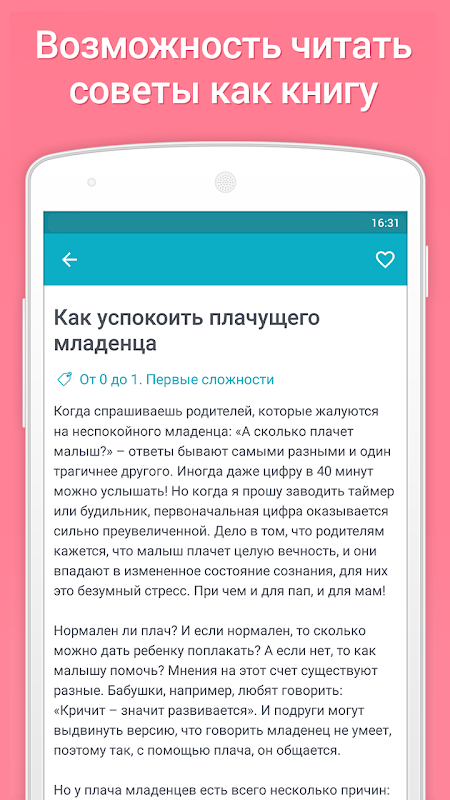 يحتوي هذا التطبيق على نصائح بسيطة وحقيقية مبنية على الخبرة المهنية والأمومة للمؤلفة.