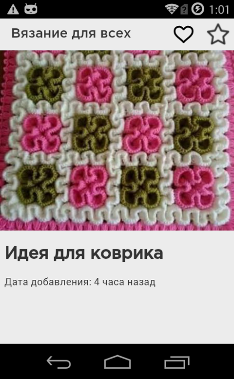 Приложение «Вязание для всех» поможет Вам оставаться на пике вязаной моды, быть в курсе последних новых модных моделей в мире вязания спицами и крючком, следить на лучшими из них. В приложение представлены различные модели вязания: кардиганы, пальто, жакеты, кофты, пуловеры, джемперы, свитера, платья, туники, юбки, шапки, шарфы, шали и так далее.