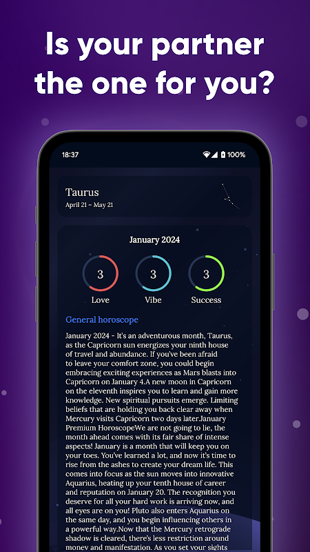 بالإضافة إلى ذلك ، يوفر لك تطبيق "برجك لكل يوم" الفرصة لدراسة مخطط الولادة ، وهو علامة كونية فريدة لشخصيتك. سوف تكون قادرا على معرفة نقاط القوة والضعف في شخصيتك ، ومجالات النشاط المناسبة والميزات الفلكية الأخرى التي ستساعدك على فهم نفسك وغرضك بشكل أفضل.