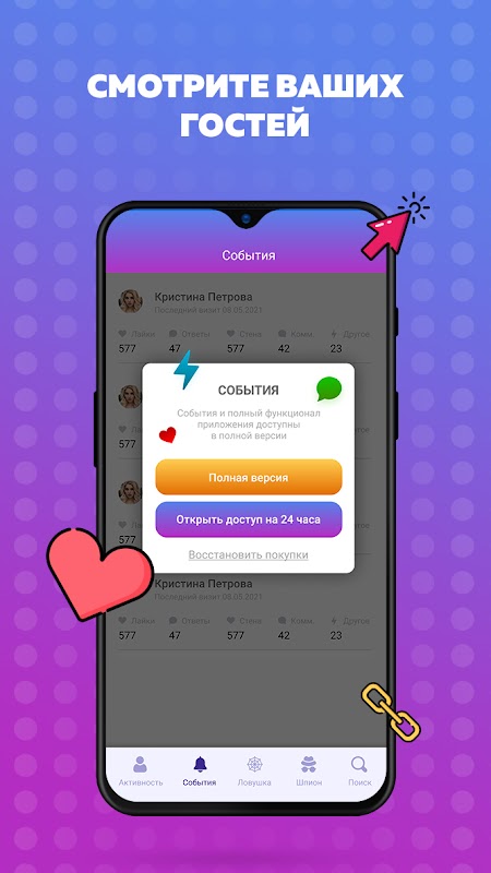 من خلال تطبيقنا ، لا يمكنك الوصول إلى قائمة ضيوف VK لحسابك الخاص فحسب ، بل يمكنك أيضًا الوصول إلى الكثير من الوظائف المخفية حتى يومنا هذا. قم بتنزيل ومواكبة جميع الإجراءات على صفحة فكونتاكتي الخاصة بك ، وكذلك على صفحات أصدقائك والمستخدمين المحبوبين.