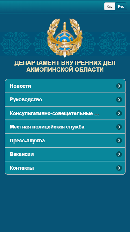 Қазақстан Республикасы Ішкі істер министрлігінің Ақмола облысы Ішкі істер департментінің мобильді қосымшасы,