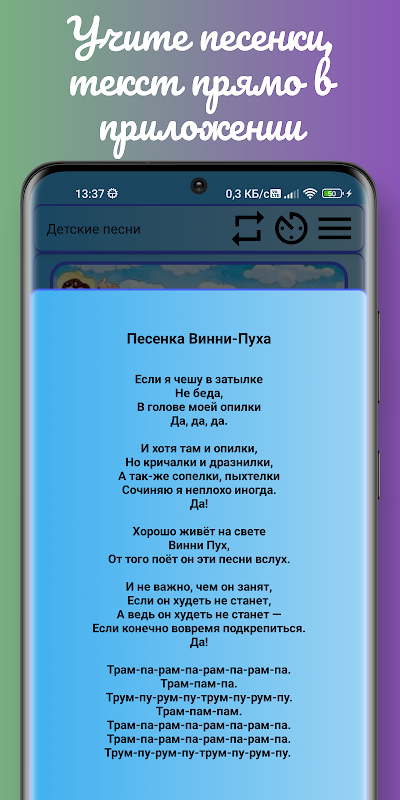 يوجد في التطبيق لجميع أغاني الرسوم المتحركة كلمات الأغاني.