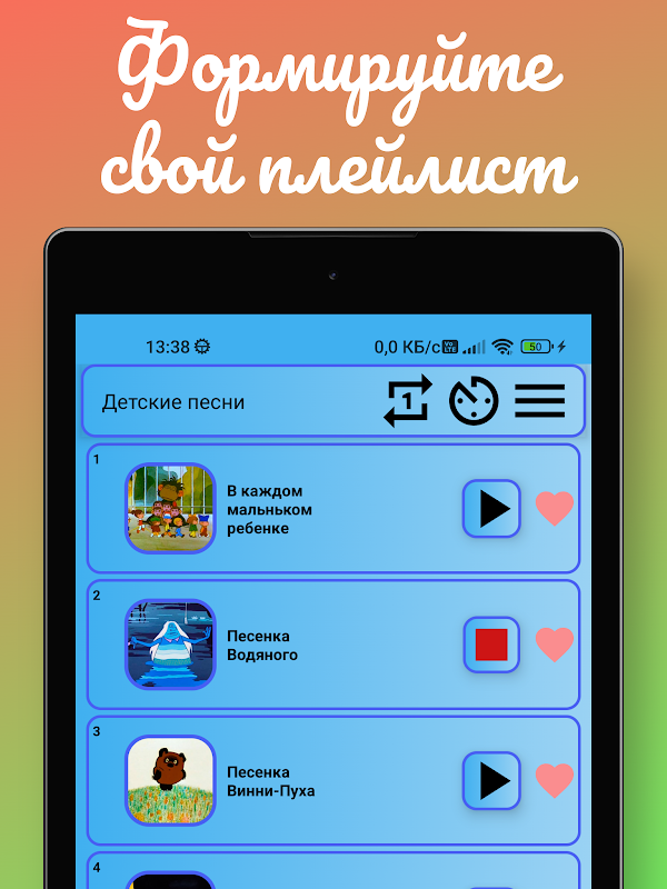يمكن تشغيل أغاني الرسوم المتحركة واحدة تلو الأخرى أو تكرار نفس المقطوعة.
