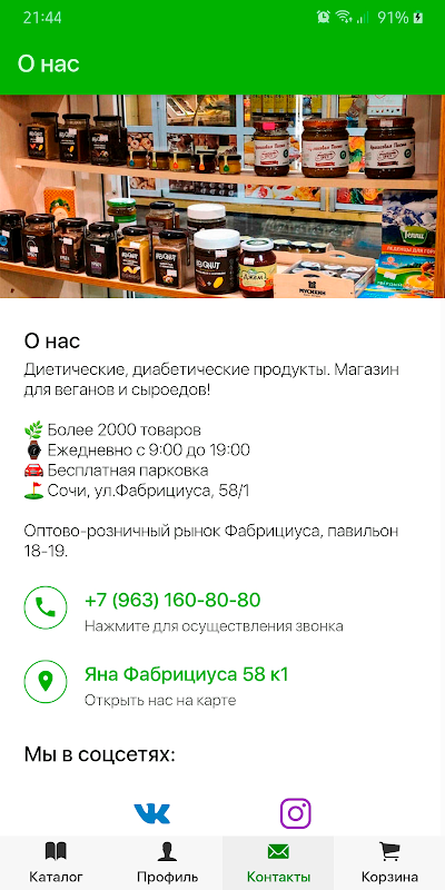 Мобильное приложение "Еда без вреда" предоставляет товары без животного происхождения и ГМО. Питание для диабетиков, вегетарианцев, сыроедов. Все продукты без сахара и глютена.
