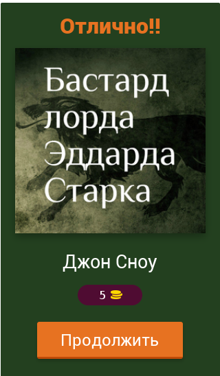 посвящается новая масштабная викторина. Эта игра в очередной раз погрузит вас в мир Семи Королевств. Здесь вы встретитесь с любимыми персонажами и пройдете с ними через все захватывающие приключения, которые встречались им на протяжении всех сезонов. Проверьте себя, насколько хорошо вы знакомы с событиями в сериале и его героями. Вас ждет более 400 вопросов! За каждый правильный ответ вы будете получать монетки. Обменивайте монетки на всевозможные подсказки, которые помогут пройти уровень.