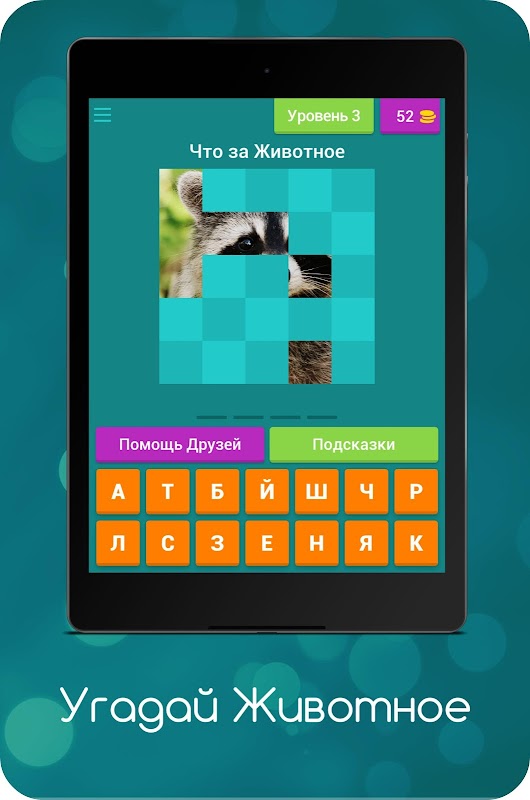 "Угадай животное" - Интелектуальная словесная игра для взрослых и детей, которая построена по уровням для всех любителей головоломок и угадаёк. Проверьте, хорошо ли вы знаете животных мира? Угадайте кто спрятан за квадратиками на фото: Панда, Лев, Енот, Слон, Собака или какой-то другой, зверь?