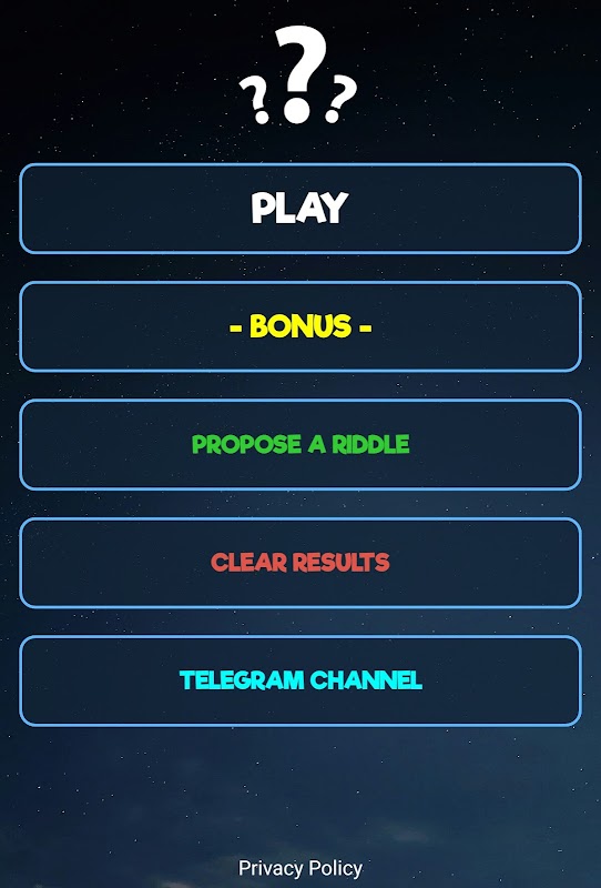 يتكون التطبيق من أربع فئات: ألغاز منطقية (المستوى ١، المستوى ٢)، وألغاز مضحكة، وألغاز مستخدمين.