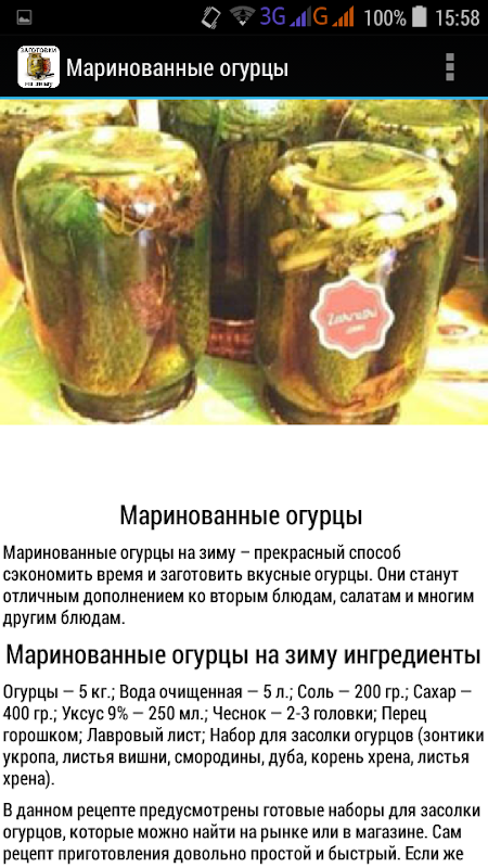 معلومات Заготовки на зиму. Закрутки. Соленья. APK