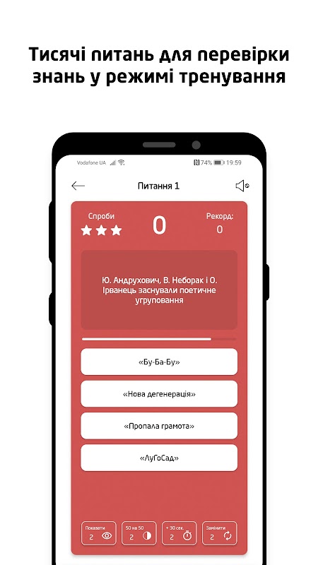 هذه لعبة فكرية شيقة، تُمكّنك من تحدي أصدقائك أو خصومك، بالإضافة إلى تعلّم العديد من الحقائق الشيقة والمعلومات المهمة اللازمة لاجتياز اختباري ZNO (NMT) وDPA بنجاح.
