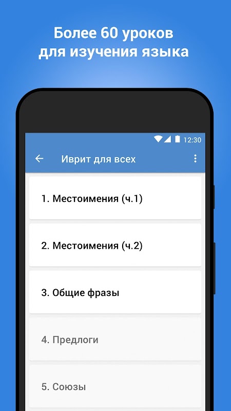 В данном приложение есть словарь на 400 000 слов, что поможет во время путешествий по Израилю. При регулярных занятиях уже через две недели вы сможете ощутить первые результаты, а через месяц воспринимать на слух и отвечать на новом для Вас языке.