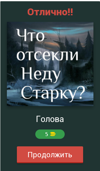 В ожидании очередного сезона сериала "Игра престолов", погрузитесь в волшебный мир Семи Королевств с новой масштабной викториной (вопросы по сериалу "Игра престолов", тест). Здесь вы снова переживете все те приключения, которые выпали на долю любимых персонажей. В игре более 300 уровней, так что скучать не придется. Проведите время в компании любимых героев "Игра престолов", отвечая на вопросы о ярких событиях из сериала. Проверьте свои знания о благородных Домах Вестероса, о легендарных битвах, о великих рыцарях и воинах, безжалостных убийцах, прекрасных леди и многое другое, что подтвердит ваш статус истинного фаната сериала "Игра престолов" и серии книг Джорджа Мартина "Песнь льда и пламени"! За правильные ответы вы получите монеты. Их можно обменивать на всевозможные подсказки, чтобы легче проходить уровни!