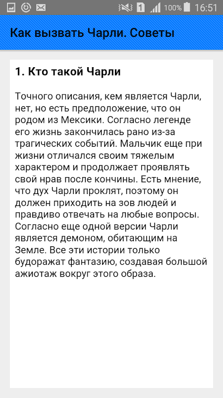 إذا كنت تبحث عن إجابة لسؤال مثير؟ استفد من تحدي الروح المكسيكية المسمى تشارلي. الطقوس ليست خطيرة ، لكنها ستجذب أولئك الذين يحبون دغدغة أعصابهم. تحظى ألعاب السحر المختلفة بشعبية بين الشباب ، لذلك يهتم الكثيرون بكيفية استدعاء تشارلي ، الذي يمكنه تقديم إجابات لجميع الأسئلة المثيرة. من هو تشارلي؟ لا يوجد وصف دقيق لمن هو تشارلي ، ولكن هناك تكهنات بأنه ينحدر من المكسيك. وفقًا للأسطورة ، انتهت حياته مبكرًا بسبب الأحداث المأساوية.