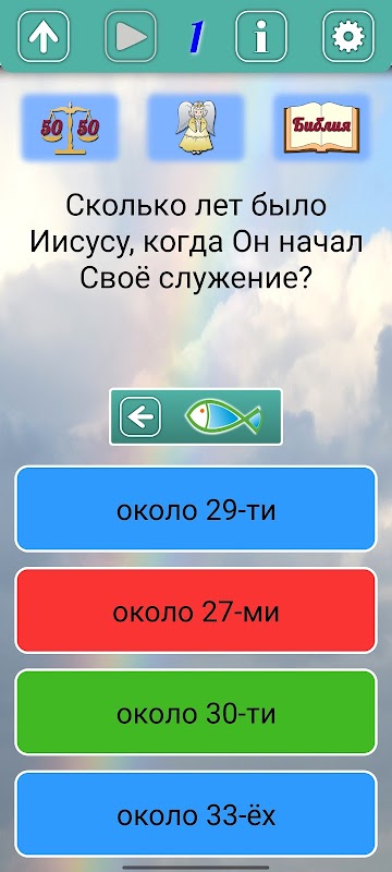 خلال كل لعبة صغيرة ، يمكنك استخدام ثلاث تلميحات: 50 إلى 50 (سيقوم الكمبيوتر بإزالة إجابتين خاطئتين بشكل واضح) ، مساعدة الملاك (ستظهر لك الإجابة الصحيحة للتو) ، نص الكتاب المقدس (سيظهر لك نص الكتاب المقدس وبعد قراءته ستتعلم الإجابة الصحيحة). إذا كنت قد استخدمت جميع التلميحات الثلاثة ، فيمكنك الحصول على تلميح إضافي آخر من خلال مشاهدة الإعلان.