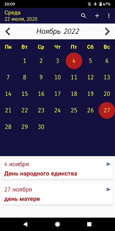 ✔ انقر على اسم الشهر لرؤية أحداث عطلات روسيا الكاملة لذلك الشهر.