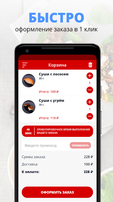 Скачивайте наше приложение, оформляйте заказ и наслаждайтесь любимой едой, где бы Вы ни были! Приятного аппетита!