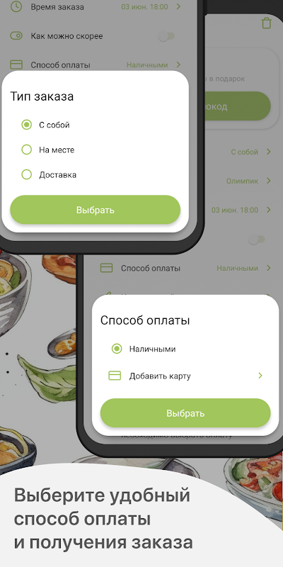 كيفية ترتيب في المرفق "مقهى الأولمبية": تحديد العناصر المفضلة لديك من القائمة، وإضافتها إلى عربة التسوق والشروع في الخروج الشاشة (عن طريق الضغط على أيقونة سلة المهملات).