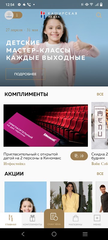 مع تطبيق مركز تسوق Kashirskaya Plaza ، أصبحت عمليات الشراء أكثر متعة. اشترِ ما اعتدت عليه واحصل على تحيات من المتاجر والمطاعم: