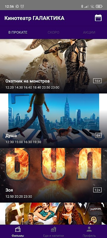 В приложении «Галактика» вы можете приобретать билеты на любой киносеанс в кинотеатре Галактика г. Мурманск. Вы так же можете приобрести продукцию кинобара. При покупке билетов или продукции кинобара через приложение вам будут начисляться бонусы, которые можно будет использовать при следующей покупке билетов или продукции кинобара.