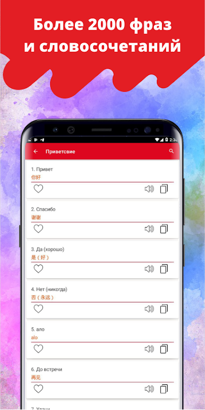 Русско-китайский разговорник содержит более 2000 фраз, которые отсортированы и сгруппированы по темам с изображениями. Самое главное Русско-китайский разговорник произношение фразы на русском языке, это функция позволяет изучать русский язык с правильным произношением.